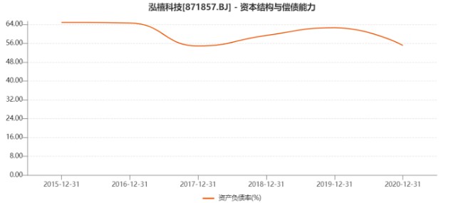 1)资产负债结构好、利息保障倍数高。如下图所示,泓禧科技资产负债率呈下降趋势,2020年降为55.11%。