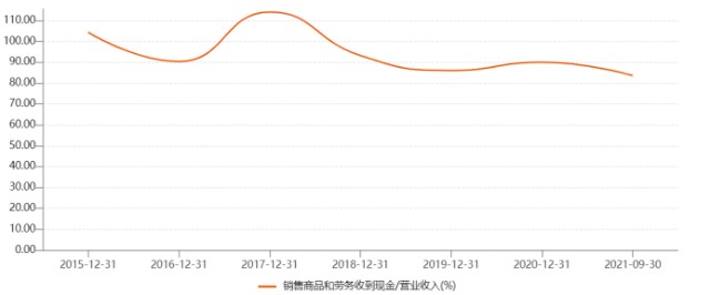 2) 应收账款周转天数,近几年总体呈现逐年下降的趋势,2021年前三季度从2020年的107天,小幅上升到124天。