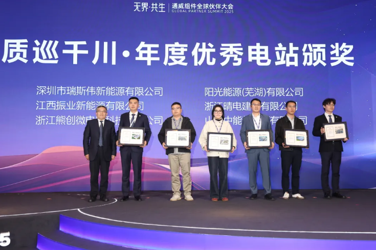 今年以来,“质巡千川 护航电站”通威光伏组件项目质量巡检中国行持续开展。截至目前,通威售后巡检服务团队携手第三方检测机构,已完成120座光伏电站的专业巡检,覆盖项目容量超过10GW,足迹已遍布全国18个省份,累计行程突破13万公里。会上隆重颁发了“2025年度质量巡检优秀电站”奖项,通威股份光伏商务部电力战略顾问赵亚洲向获奖伙伴颁奖。好品质是电站长效运营的基石,巡检运维则是对品质的持续守护。通威将与更多伙伴携手深化合作,共创绿色可持续的未来。