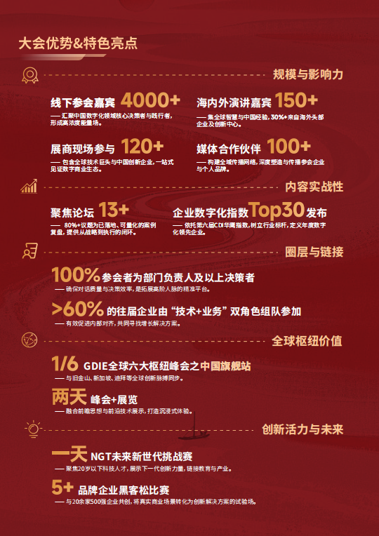 我们将共同传递大会的前沿观点、重磅嘉宾分享与核心亮点,让“将AI,转化为生产力”的理念辐射更广泛的行业群体,助力参会企业实现品牌声量与行业影响力的双重提升,推动全球数字化领域的创新成果与实践经验通过这一传播网络实现高效触达。