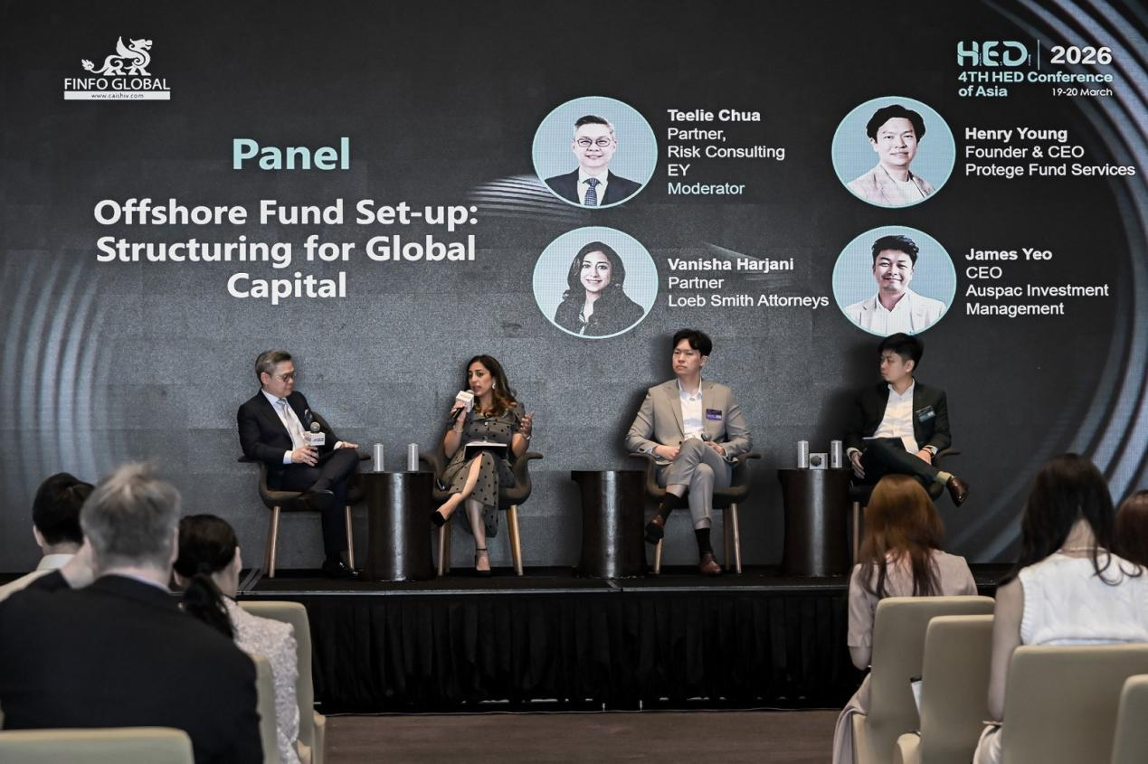 在圆桌讨论“离岸基金设立”中,安永风险咨询合伙人Teelie Chua担任主持,与Protege Fund Services创始人兼CEO Henry Young、Loeb Smith Attorneys合伙人Vanisha Harjani、Auspac Investment Management CEO James Yeo比较了开曼、BVI、新加坡VCC等架构的优劣,并指出在合规趋严的背景下,混合型在岸/离岸架构以及代币化基金可能成为未来3-5年的重要发展趋势。