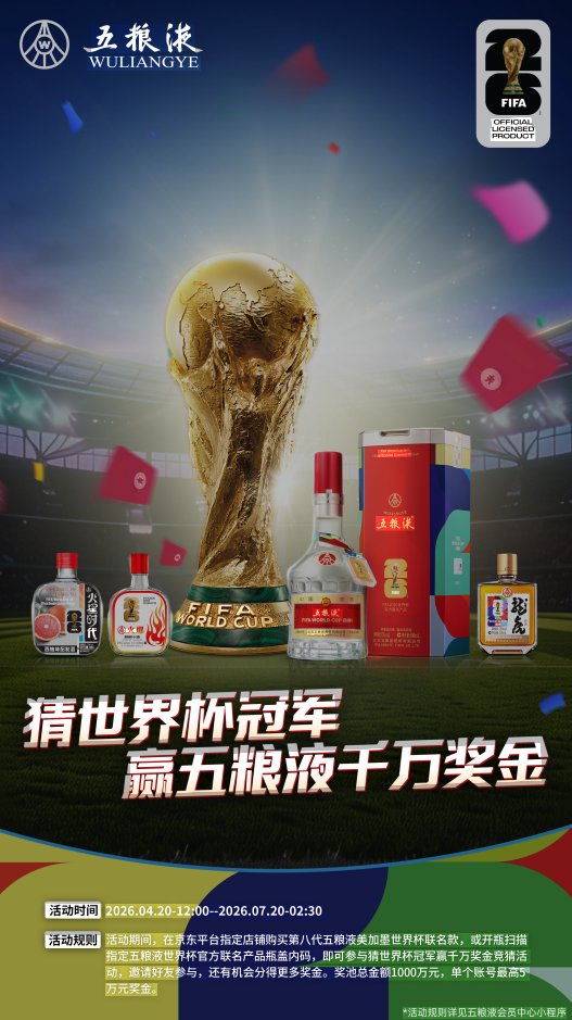 距离2026年美加墨世界杯开幕不足两个月,五粮液已经完成了从预热到引爆的布阵。千万现金池是看得见的回馈,而更深层的吸引力,是那份“我猜中了冠军”的成就感,是和朋友组队讨论新赛制、新军、新黑马时的集体归属感,更是未来某天打开一瓶五粮液世界杯联名酒,回忆起2026年夏天时的情绪共振。